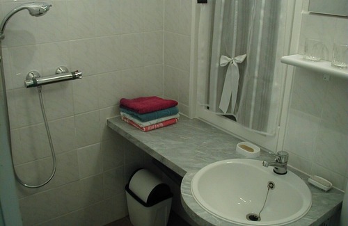 The kitchenette is equipped with an oven, a stovetop, and a refrigerator, as well as a coffee maker, an electric kettle, and a microwave. Bathroom amenities include towels and toilet paper. Other amenities include bed sheets, an ironing board, change of towels on request, and change of bedsheets on request.