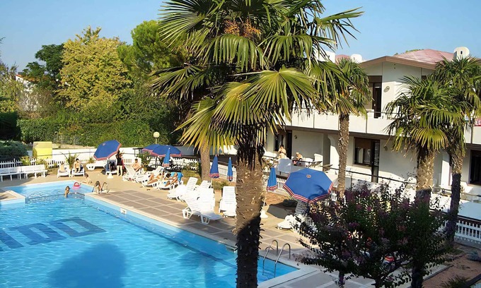 The detached bungalow is furnished in a functional style. The property is located in the town centre. Also due to its quiet and sunny location the domicile is popular. Available for use: parasol, sun lounger and garden furniture. private beach on the sandy and golden coast of Cavallino with the free use of 1 umbrella and 2 sunbeds of approx. mid May to approx. mid-September.LocationCavallino-Treporti, district Cavallino. The bungalow is located on a enclosed garden plot with flowers, shrubs and trees, bordered by a fence. The landlord does not live in the house or on the property. Access is directly from the main road (asphalted). Parking (for 1 car) is available on the property. All apartments have private parking Specialair conditioning.Facilities: baby cot. TV reception takes place via satellite. PoolAll pools are available for shared use. Outdoor pool (usable from mid May to mid September, 6 m x 8 m). Leisure2 bicycles. Dogsallowed, EUR 35.00/pet per stay. DistancesShopping 300 m, restaurant 100 m, town center 500 m. airport in Venice Marco Polo 41 km. Lido di Jesolo 5 km away. In summer: Bathing possibility 500 m in Lido di Jesolo (beach 500 m in Lido di Jesolo featuring sand). DivisionBungalow, 1 floor, 3 rooms (including 2 bedrooms), 50 sqm, in total 4 beds. RoomThe entrance to your bungalow is located on the ground floor, is at ground level and leads directly into the kitchen-diner. Living room (walk-through room) with sitting area, TV, dining area (4 seats) and access to the terrace (garden furniture, 1 table, 4 chairs). Bedroom with 1 double bed. Bedroom with 2 single beds. Cooking nook in the living & bedroom with gas stove (4 flames), extractor hood and fridge (icebox). Bathroom with shower, 1 washbasin, WC, bidet and window. Terms of lease and pricesIncluded in the priceOutdoor pool, parking place, electricity, gas, water, pool. Side costs-Additionally(Payable when booking)/baby cot – please order at booking on request 6,30 € per bed per day.Costs on the spot:/Obligatory:local tax by local tariff (if charged).On request:air conditioning 5 € per object per day. Bed linen (please order at booking) 6 € per person per first time use and changing. Towels (please order at booking) 6 € per person per change. For a fee: final cleaning.Deposit:EUR 200,-/object.