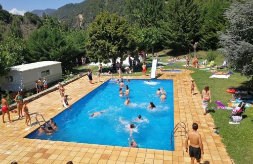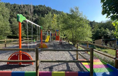 Providing quiet street views, Bungalows Pont d'Ardaix in El Pont de Bar offers accommodations, a bar, and a shared lounge. This property offers access to table tennis, free private parking, and free Wifi. Catalan cuisine is served at the restaurant, and guests can enjoy an outdoor dining area. The campground provides guests with a terrace, mountain views, a seating area, cable TV, a fully equipped kitchen with a fridge and a stovetop, and a private bathroom with shower. The campground provides certain units with river views, and all units include a coffee machine. The rooms are equipped with heating facilities. There is a coffee shop, and packed lunches are also available. For guests with children, Bungalows Pont d'Ardaix features outdoor play equipment. Guests can swim in the pool with a view, go skiing or cycling, relax in the garden, and use the barbecue facilities. Naturland is 24 miles from the accommodation, while Meritxell sanctuary is 28 miles away. Andorra–La Seu d'Urgell Airport is 14 miles from the property.