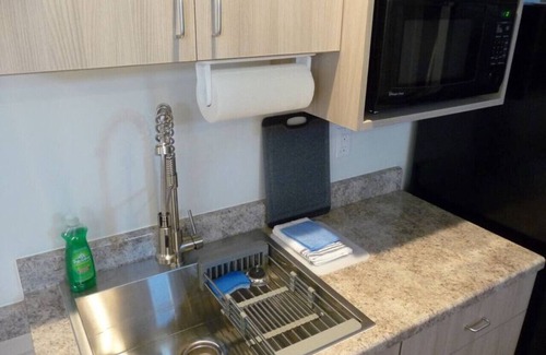 The kitchenette is equipped with a full size fridge and microwave. For your convenience there is also a blender, crockpot, toaster, rice cooker, coffee maker, electric water kettle and dishes/utensils for four guests.