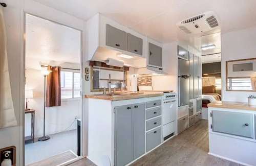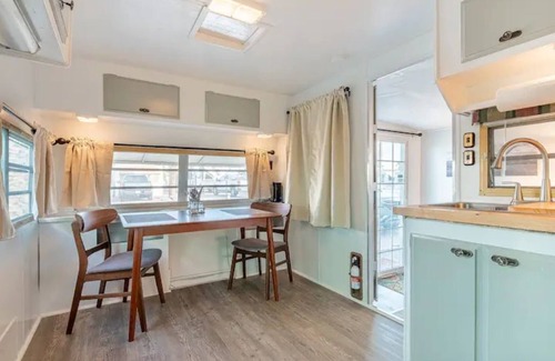 Relax in a delightful remodeled travel trailer plus Arizona room with twin beds in a wonderful resort. One guest must be 55+. Enjoy the pools, hot tubs, gym, billiards, & shuffleboard. Need a bigger bed? ask about my other places.