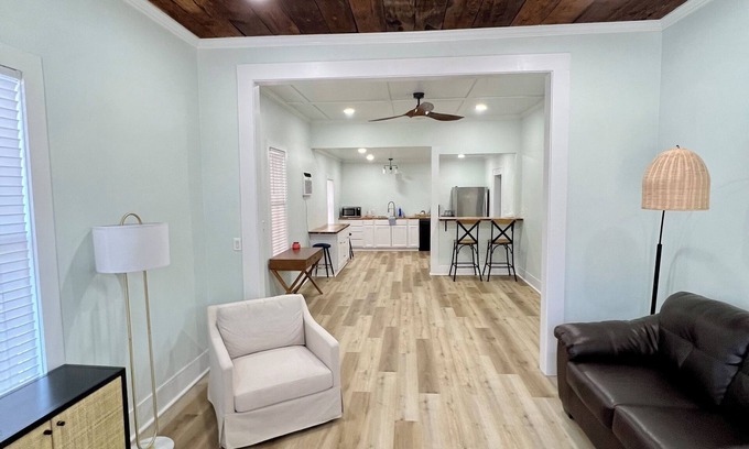 Bunkie Bungalow 3/2 home across from Haas Auditorium is an ideal wedding accommodation, providing the perfect blend of comfort and convenience for your special occasion. Nestled just steps away from the venue, this spacious retreat offers everything you need to make your wedding experience unforgettable.