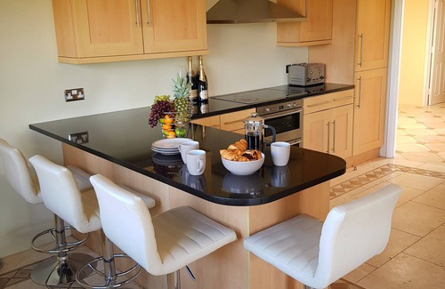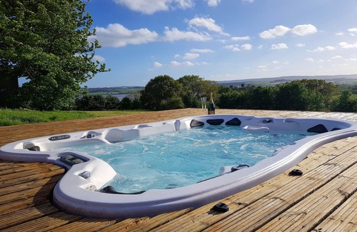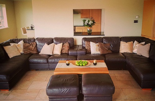 Situated in 6 acres of grassland, Bunny Barn offers a taste of luxurious living with an outdoor hot tub and a tennis court overlooked by an arced viewing area equipped with fridge, table and chairs.