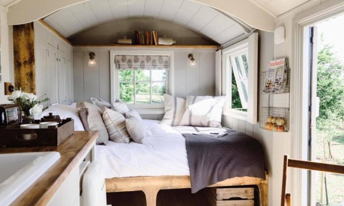 Burghley Mouse is the height of good taste and thoughtful design. Luxury bedding, curved ceilings, views of countryside, the sweetest log burner, a smart TV and a high-end bathroom. This hut has it all.