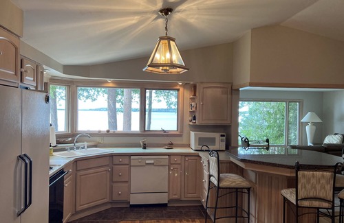 - Incredible lakefront house with cottages, dock, fire pit, decks, & amazing views