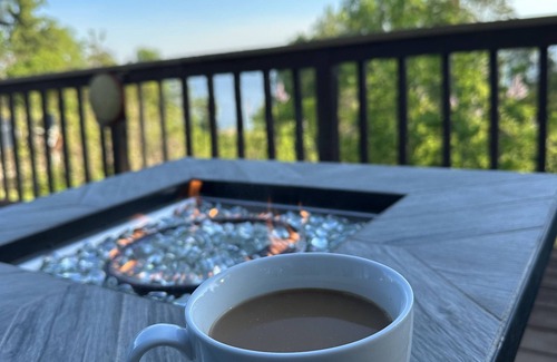 The wrap-around deck with a picnic table, cornhole boards, fire pit with seating, gas grill, and additional chairs makes for great outdoor entertainment! Enjoy a cozy cup of coffee (provided) or a cocktail while sitting by the fire table and watching the sunset as the eagles fly over the river.