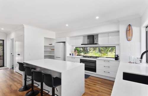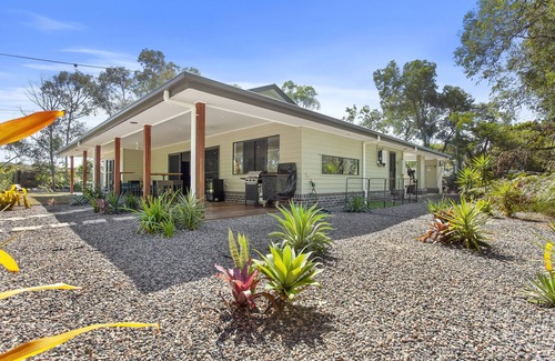 Take it easy at this unique and tranquil getaway. Escape to paradise in a stunning three-bedroom home nestled amidst breath taking bushland surroundings. With its inviting outdoor living space and unbeatable location just an eight-minute drive from Bribie Island and Sandstone Point Hotel, your perfect getaway is here!]