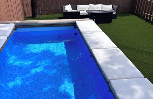 Yes, this North Loop house has a swimming pool. Check the Facility Overview section for details about the pool and other available facilities.