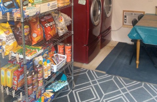 Self check in, Washer Dryer, fully stocked fridge, Free WIFI, Fire pit,, cornhole, horseshoes, dining room, smoking is allowed outside, barbeque deck, beautiful sunsets, view of the mountains. each cabin has a porch, trails for hiking bike riding etc. fishing, hunting, and an animal sanctuary.
