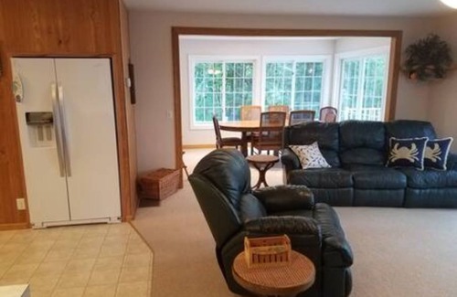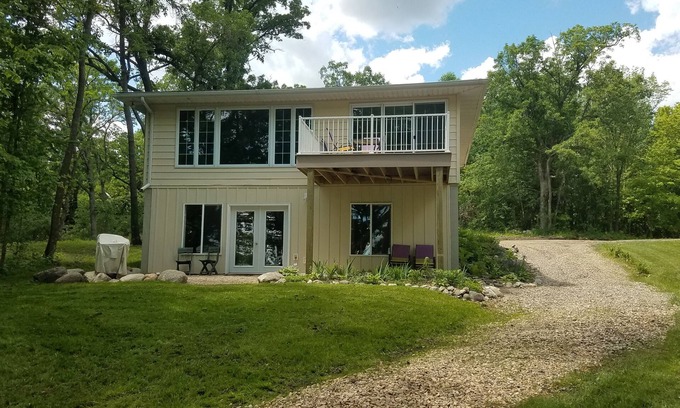 Come and enjoy a relaxing retreat on Lake Freeborn! Buttercup Hideaway sits on a private two acre wooded lot with a beautiful view of the lake from the main level deck, lower level patio or lake side around the fire pit! Bring your swim suit and fishing pole for a great time! See you soon!! Enjoy the canoe or kayak. Fire wood stacked at the fire pit is yours to enjoy. There's plenty of off street parking. There's also a 30amp receptacle for camper hook-up if needed. License# 1892