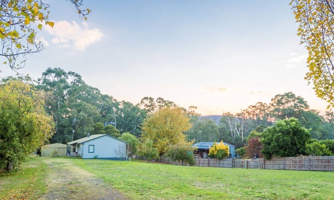 Two Queen Size bedrooms and one room with 2 sets of bunks this property is great for a family or small group sleeping 8 people. Linen and towels included. Full kitchen with fridge, stove, cook top, microwave, dishwasher and all necessary pots, pans, cutlery and crockery. The living area has been beautifully furnished with a stylish plush lounge suite, large flat screen TV for ease of viewing and cosy wood fire. There is also a split system for instant heating and cooling. From the living room step outside onto the wrap around veranda with a generous sized back yard that backs on to Steavenson river. This home provides the ideal getaway for guests to use as a comfortable and conveniently situated base as they explore this enchanting area.