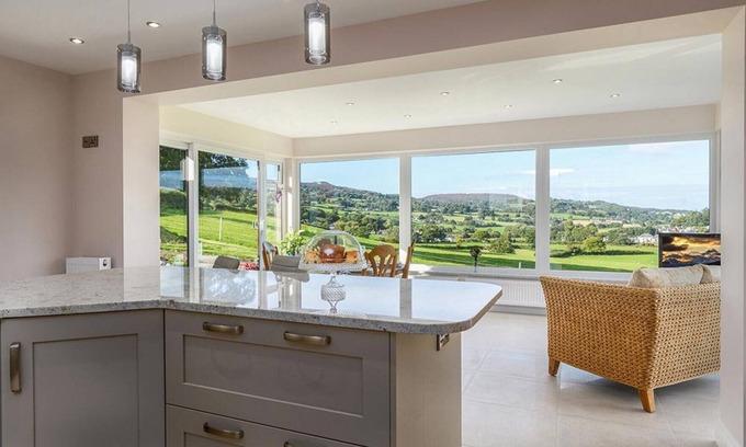 Just outside the small village of Henryd and about two and a half miles from the walled castle town of Conwy. Bwthyn Tan Dderwen is a warm, cosy bungalow set in its own grounds in a very peaceful and tranquil setting. Close to Conwy and well situated for touring North Wales via the coastal road towards Anglesey or through Betws y Coed to Snowdonia. A wonderful base for the surrounding walks and the opportunity to see the plentiful wildlife. Nearest beaches just four miles away. This is a warm cosy bungalow set in its own grounds in a very peaceful and tranquil setting. Close to Conwy this property is ideally situated for touring the coast, Snowdonia and the whole of North Wales with its wonderful walks and coastal paths. Spacious and light throughout, the show piece of this beautiful bungalow is the stunning new kitchen diner with fabulous views over the open countryside towards the village of Henryd and the hills beyond. To further take advantage of the views there is a spacious patio area accessed from the french doors from the lounge and from the kitchen. The lounge is a peaceful space with log burner, lovely views and all the comforts of home. There are two bedrooms, the master with King size bed and one twin bedded room, and newly refurbished bathroom with bath and walk in shower. Facilities include full central heating, dishwasher, washing machine, tumble dryer, freezer, microwave, Smart TV in lounge (with DVD player) and another in kitchen area, third TV in bedroom, wifi and garden furniture. Bed linen and towels are supplied. Heating and electricity is included. This is a no smoking property. Sorry no pets allowed.
