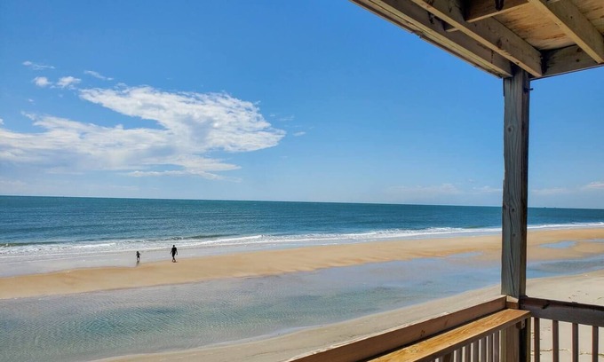 Come stay "By The Sea" in this little slice of oceanfront heaven. Enjoy beautiful views from your open-floorplan living space, or better yet- sit out on the private balcony watching the waves roll in. You will love the direct beach access right outside your front door. Walk miles on the tranquil & beautiful Topsail Beach, fish in the surf, or just sit back, relax & work on your tan. Always be on the lookout for dolphins out in your front yard!