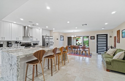 The pool area is outdoor living at its finest! Plenty of sunshine and shade if you choose under the colorful sunshades. There is an outdoor dining table, poolside and provides seating for four (6). There is also an outdoor kitchen with gas BBQ and sink. Plenty of outdoor seating with chaise loungers and patio table chairs. In addition, there is a ping pong table on the side of the house for your enjoyment. Also this house comes with bikes and beach essentials. Situated less than four blocks from the beach in the picturesque, seaside, community of Bel-Air in Lauderdale by the Sea, Casa Almare offers vacation guests three exceptional beach options -- the first option would be to simply lock the front door and walk to the beach from the home. There is a direct public beach portal entrance off Ocean Boulevard (A1A) right next to Seawatch Restaurant. Should you prefer to spend a day at the beach in which you have multiple dining options, the main beach portals in both Lauderdale by the Sea and Pompano Beach are less than one and one-half miles from Casa Sailfish. In the case of Lauderdale by the Sea, there are a multitude of first-class dining options (Aruba Beach Café, The Village Grille, 101 Ocean, Burger Fi, Kilwin's Ice Cream, etc.) and the main beach portal (where Commercial Boulevard meets the ocean) offers the legendary Anglin's Fishing & Observation Pier (open 24 hours a day). The main beach portal in Pompano Beach (where Atlantic Boulevard meets the ocean) has recently undergone a complete renovation (the end result is simply stunning) and offers beachgoers all new restrooms, a children's beachfront playground, including a spectacular children's water fountain play area, a beachfront exercise fitness area, cabana rentals and lifeguard towers. In addition, the Pompano Beach Fishing & Observation Pier is open to the general public and offers a spectacular setting to enjoy the picturesque surroundings. Optionally-heated pool-* Optional pool heat is available from October 1st through May 1st for $35/day plus tax with a duration of your stay minimum