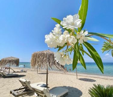 Offering a garden, Byblos Mare-The Exclusive Beach Front Villa features accommodations in Skala Sotiros. This beachfront property offers access to free Wifi and free private parking. The villa provides an outdoor swimming pool, wellness packages, and room service. Leading onto a balcony with pool views, the spacious air-conditioned villa consists of 4 bedrooms. Providing a terrace with sea views, this villa also provides guests with a satellite flat-screen TV, a well-equipped kitchen with an oven, a fridge, and a stovetop, as well as 3 bathrooms with a walk-in shower and bathrobes. The villa offers bed linen, towels, and laundry service. A selection of options including local specialities, fresh pastries, and pancakes are served for breakfast, and breakfast in the room is also available. There is a snack bar, and a grocery delivery service and packed lunches are also available. For guests with children, the villa offers a baby safety gate. Cycling and hiking can be enjoyed nearby, while a car rental service and a private beach area are also available on-site. Skala Sotiros 2nd Beach is a few steps from Byblos Mare-The Exclusive Beach Front Villa, while Port of Thassos is 13 miles from the property. Kavala International Airport is 27 miles away, and the property offers a paid airport shuttle service.