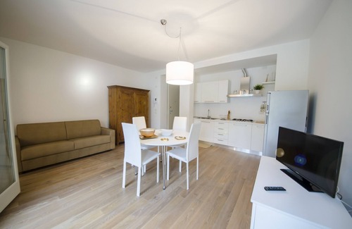 The apartment available is for 4 people and consists of a large living room with a fully equipped kitchen-dining area, 1 king size double bedroom with wardrobe, 1 bathroom with shower, 1 sofa bed with ergonomic mattress for 2 people in the living room.