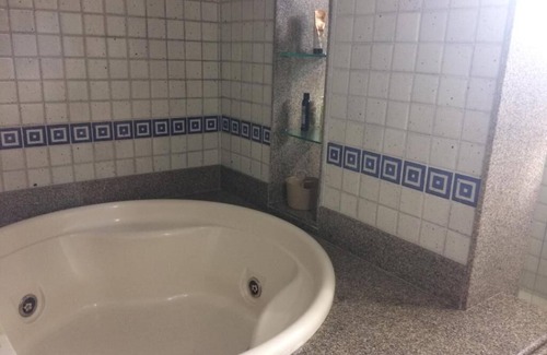 While you're here, you can enjoy all the comforts of home and more, including a jetted bathtub and WiFi, as well as air conditioning and an ironing board. Other amenities include laundry facilities, towels, soap, and toilet paper.