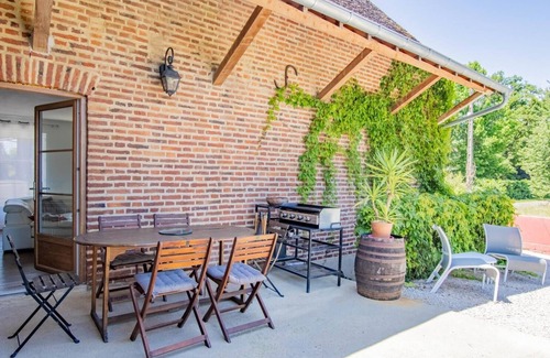 Lovely 19th century Bresse house of character with traditional brick architecture, carefully restored, located in a quiet area in the heart of a peaceful & charming little typical village, on the edge of a wooded meadow opening onto the communal fishing pond directly accessible (carp & pike among others...). Nestled in the heart of the Bresse countryside, in the hollow of the verdant lower Doubs valley, not far from the first wooded mountain foothills of the Jura massif, La Chapelle-Saint-Sauveur benefits from a soothing, gentle, preserved countryside (partly protected in ZNIEFF), combining "full nature" & agriculture, nestled in the hollow of a bocage plain dotted with bucolic ponds & beautiful wild forests and has a leisure center with a very famous "natural" lake converted into "organic swimming". Very comfortable cottage. Warm country character with contemporary accents mixed with some rich traces of the original building (elegant "checkerboard" tiles on the kitchen side). Cozy & exotic atmosphere. Large private terrace, partly sheltered, offering a beautiful view of the surrounding countryside. Shared swimming pool area (2x5m) with a large pool house (with summer kitchen, WC & equipped mini gym). Pleasant natural garden including ping-pong table, swing-slide & badminton-volleyball net. Bonus: access to an old cellar converted into a relaxation area to cool off in the summer. Composition: House comprising 4 gîtes. Wifi (fiber). Electric heating. Shared washing machine (laundry area on the 1st floor). Gîte on the ground floor: kitchen, living room, 3 bedrooms (double bed 140x190cm / electric bed 2 p. 160x200cm / double bed 140x190cm) including 1 PMR with TV & private bathroom (shower/WC), shower room (shower/WC). Terrace (on shared mini-courtyard) + private parking. Garden (ping-pong/swing-slide/badminton-volleyball net) + swimming pool (2x5m / pool house) + shared cellar. Shops including supermarkets 6 km.