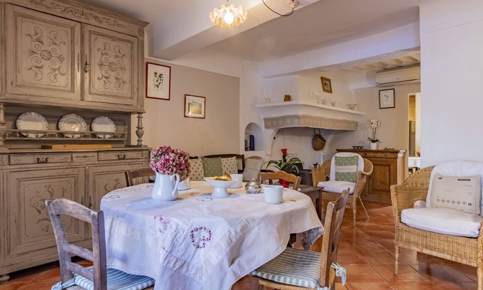 There is a small bar in the neighbouring house (open until 1h in the morning at most). Terraced house "Côté Place". In the centre of Villars 4.5 km from the centre of Saint Saturnin-lès-Apt, 7.5 km from the centre of Apt, 45 km from the centre of Carpentras, in a central position. Private: patio, terrace, garden furniture, parking at the house, public parking 50 m. Shop 7.5 km, bar 5 m, bakery 4 km, bus stop "Moulin à Huile" 2.4 km. Nearby attractions: Roussillon 15 km.