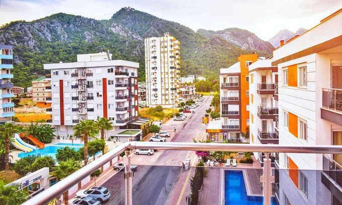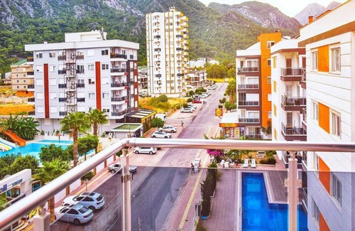 This spacious 140 square meters 2 bedroom flat is located on the 3rd floor of the building and has a nice mountain and pool view. The site is in Konyaalti Antalya in the west part of it. We are in 30 min by bus or 15 min driving from the city center and the closest hospital. There are 3 supermarkets in walking distance and a grocery store on site. Very nice for family vacations far from city noise. There is a bakery-cafe in front of us where you can have a famous Turkish breakfast. Quiet, safe and picturesque suburb of Antalya.