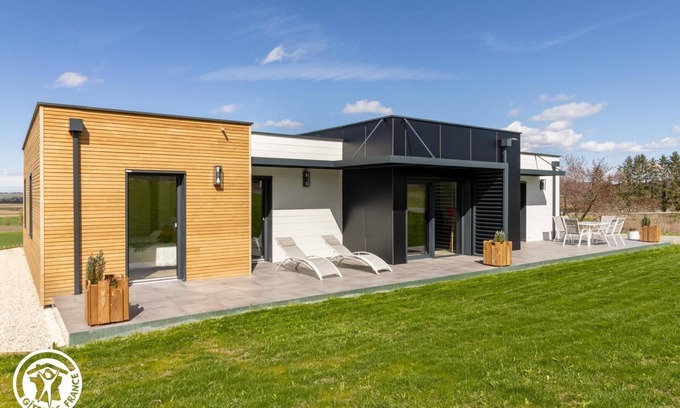 As soon as you arrive, you will immediately be seduced by the elegance and contemporary style of the house. Indeed, this beautiful house is not lacking in assets! The interior spaces are filled with natural light thanks to the large windows which also offer stunning views of the surroundings. The decoration harmoniously combines modern elements and rustic touches, creating a warm and welcoming atmosphere. The spacious living room has comfortable sofas, perfect for relaxing after a great day of exploring. Decorative wallpapers give a cheerful and different atmosphere to each space. Outside (being revegetated), a large private garden is available to you, ideal for organizing outdoor barbecues or simply relaxing under the sun. Entirely on one level, the gîte is composed as follows: - A living room/kitchen - Two bedrooms with a 160 bed each - A bedroom with two 90 cm beds (can be pushed together) - Laundry - A bathroom - Two independent toilets