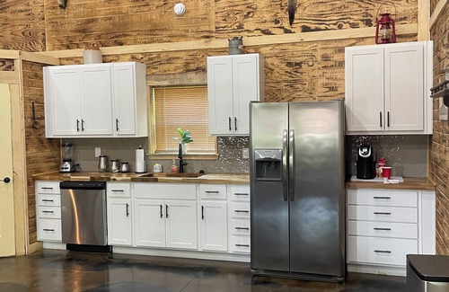 Welcome to C&S Outfitters Lodge. If you are looking for a rustic with hint of modern lodge stay, a man cave feel or hunting cabin tucked away in Burlington, Kansas. This has it all. We have 65 and 75 inch TVs throughout. Two full baths with nice showers. 7 beds total but could fit a little more if two are in each King bed downstairs and we have the couch! Huge garage area with everything an outdoorsmen could need from stainless steel table and sink, deep freezer and electric winch to hoist up wildgame. All while being able to listen to music through our sound system throughout the house. There will also be a 65 in tv in the garage soon to entertain you during a long night while skinning up your harvest. Open concept in the living room and kitchen! Fully stocked with everything you need. Come check us out!