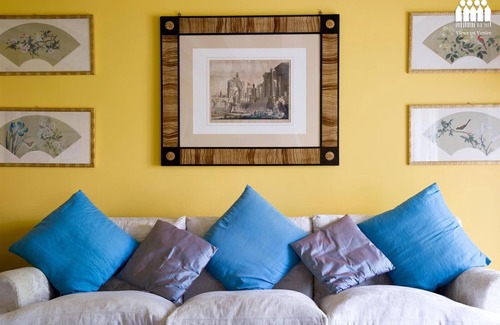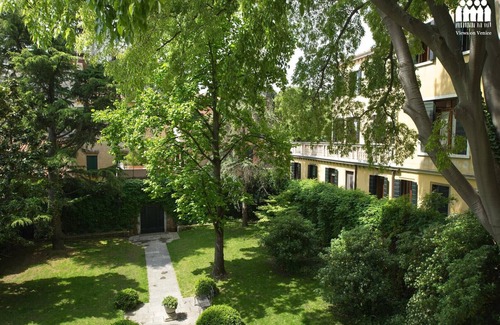 A graceful haven of gentility and tranquility with delightful garden views, peacefully situated to the rear of the 15th Century Gothic 'Palazzo Loredan Dell’ Ambasciatore' on the Grand Canal, with private water entrance. Considered one of the finest in Venice and oozing history from every pore, the Palazzo itself (birthplace of two ancient Doges of Venice - Leonardo Loredan (1501-21) and Francesco Loredan (1752-62)), enjoys a truly outstanding position between the Accademia Bridge/Academy of Fine Arts and the Ca’ Rezzonico Museum of 18th Century Art/ vaporetto stop, close to Campo San Barnaba and opposite Francois Pinault's Palazzo Grassi Museum of Modern Art.Impeccably decorated with dash and vitality and featuring carefully selected antiques from the owner's private collection, each shown to their advantage against a complementary backdrop of sunny Mimosa yellows, vivid Prussian blues, crisp white beamed ceilings and the deep, rich patina of polished hardwood flooring, Ca' Cerchieri Mezzanine offers generously proportioned accommodation for six and is located between the first and second floors of the Palazzo (a lift can be taken to the second floor, leaving one flight of stairs to descend on foot).It offers air-conditioning throughout plus wireless internet connection and features a stylishly elegant yet cosy and very comfortable living room with deep, luxurious sofas, interesting artwork and restful views over the owner's private walled garden, a separate dining room and a modern, well-equipped and fully-fitted kitchen.There are three charming and quiet double bedrooms, each with garden views and each ensuring a heavenly night's sleep - two with beautifully embellished double beds and finished in cheerful colours (the master bedroom having an up-to-date en suite bathroom with bathtub and separate shower) and a pretty third bedroom with two chintz-covered single beds. The two further bathrooms (one with bathtub and the other with shower) are modern, spacious and immaculately presented. Please note that in order to accommodate a slightly larger party, access to a further bedroom (simple in design and with a single bed) is possible at a surcharge of 50.00 Euros per night.Are you a part of a larger group who'd like to stay close together at the Palazzo? Other apartments available at this prestigious property (which played host to the New Zealand National Pavilion at the 54th Venice Art Biennale) include Ca' Cerchieri 1, Ca' Cerchieri Terrace and the spectacular Ca' Cerchieri Piano Nobile and Ca’ Cerchieri Loredan. (To find out more about the history of Palazzo Loredan dell’Ambasciatore read this article by author Cat Bauer)OUR COMMENTA tasteful and welcoming apartment for six, peacefully nestling within the ancient walls of one of the most beautiful and impressive palazzi in Venice. Private, perfectly located and minutes on foot to the cafes, bars, shops and restaurants of Campo San Barnaba and its neighbouring 'calli'.In order to get the most out of your stay in Venice, don't forget to consult our 'About Venice' page for our very own insider's guide to things to do, places to see, where to shop and a whole lot more! For arrivals between 8.00 p.m. and midnight there is an additional cost for "late arrival" of Euro 50, to be paid in cash upon arrival. We organize arrivals between midnight and one o'clock with an additional cost of Euro 100, after this time we reserve the right to accept the customer always with a supplement to be quantified according to the time of arrival.Beds will be arranged as either doubles or twins as shown in the photos. The possibility of turning a double bed into twins or vice versa can be found in the description and must be requested at least 7 days before arrival.