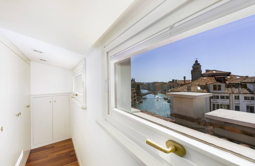 A terrific penthouse, perfect for 6, up 'in the gods' of the impressive 15th-century Gothic 'Palazzo Loredan Dell’ Ambasciatore' on the Grand Canal in Dorsoduro…