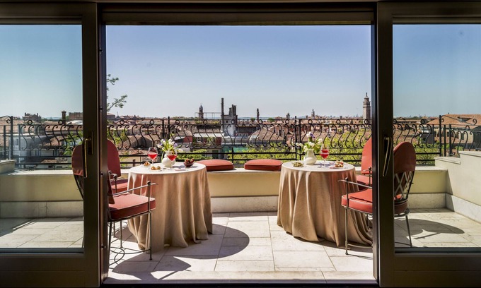 Sitting on the 4th floor at the very top of one of the finest palazzi in Venice (indeed the birthplace of 2 Doges of Venice, Leonardo Loredan (1501-21) and Francesco Loredan (1752-62)) and benefitting from plenty of light and airiness as a result, Ca' Cerchieri Terrace offers private water access for stylish and fuss-free arrivals by private water taxi and is reached by lift to the 3rd floor, leaving one flight of stairs to ascend on foot.