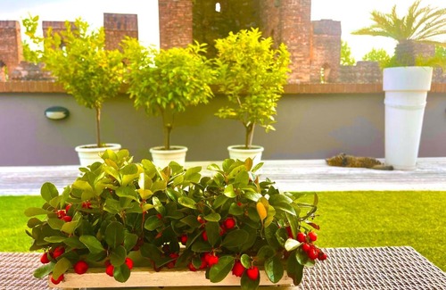 Offering a garden, CA' DEL SOLE - Attico Panoramico in Centro Storico offers accommodations in Montagnana. With quiet street views, this accommodation provides a patio. There's an outdoor fireplace and guests can use free Wifi and free private parking. Opening onto a balcony with city views, the air-conditioned apartment consists of 1 bedroom. Providing a terrace with garden views, this apartment also offers a flat-screen TV, a well-equipped kitchen with an oven, a toaster, and a fridge, as well as 1 bathroom with a bidet and a hair dryer. The property has an outdoor dining area. Gran Teatro Geox is 31 miles from the apartment, while PadovaFiere is 31 miles away. Verona Airport is 35 miles from the property.