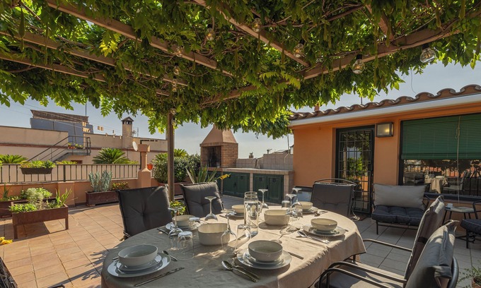 Ca La Floreta is located in the center of Cabanes, a rural town within l'Alt Empordà surrounded by nature and Catalan culture. The house has four stories, each one maintaining its rustic nature with added modern delicate touches. The fifteen-year old wisteria that climbs the facade and terrace provides fresh shade for lunches and dinners alfresco. Peralada and its well-known wine cellars are a 30min walk or 5min car ride from Ca La Floreta; multiple hiking/biking routes surrounding Cabanes are filled with magestic views of the beautiful Empordà mountains surrounding the area. With clear water beaches of all kinds nearby and France only a few kilometers away, this house offers both tranquility and adventure to those who seek it.