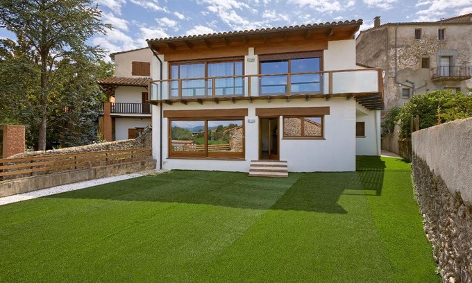 Featuring a garden, Ca la Lola features accommodations in Tortellá. This vacation home offers air-conditioned accommodations with a balcony and free Wifi. Outdoor seating is also available at the vacation home. Offering a terrace and mountain views, the spacious vacation home includes 4 bedrooms, 2 living rooms, flat-screen TV, an equipped kitchen, and 4 bathrooms with a bidet and a shower. Towels and bed linen are featured in the vacation home. There's also a seating area and a fireplace. During warmer months, you can make use of the barbecue facilities and eat on the private patio. Guests can also warm up near the outdoor fireplace after a day of skiing. Dalí Museum is 20 miles from Ca la Lola, while Girona Train Station is 25 miles away. Girona-Costa Brava Airport is 34 miles from the property.