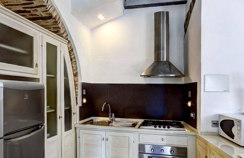 This 3 bedroom apartment is on the top floor with far reaching views over the gardens and valley. The light and airy living room has double sofa bed TV Wi Fi. Modern kitchen with dining table. The master bedroom overlooks Piazza Venezia. The second bedroom has twin beds plus a 3rd if required. Modern bathroom with Bidet and large washbasin. The 3rd Bedroom is situated in a self contained guest cottage in the garden adjoining the apartment with a separate entrance which could be ideal for teenagers. There are two single bed on a mezzanine overlooking the kitchen/living area and has its own shower room and outside terrace.