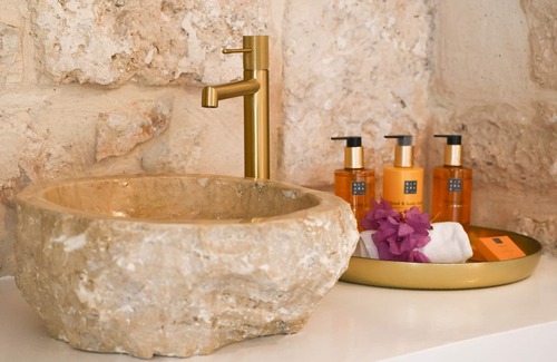 Ca Sana Teulada Moraira offers 6 air-conditioned accommodations with minibars and espresso makers. Memory foam beds feature down comforters and premium bedding. 32-inch Smart televisions come with cable channels. Bathrooms include showers with rainfall showerheads, bathrobes, slippers, and designer toiletries.