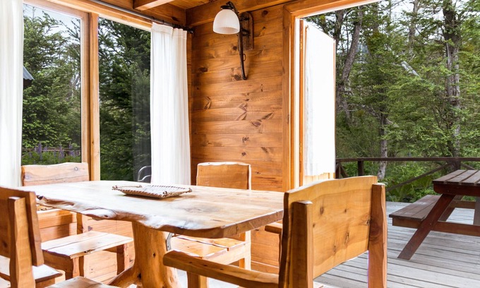 Experience the authentic Patagonian experience in this cabin in Villa La Angostura for 4 people. This accommodation allows you to enjoy nature with views of Cerro Bayo and the wooded surroundings, just 10 minutes from the centre of Villa La Angostura.The cabin is ideal for couples or small groups as it has a double bed on the mezzanine and a sofa bed in the living room. On the ground floor, the living-dining room with integrated kitchen is ideal for relaxing and sharing moments. The outdoor deck with a barbecue offers the perfect place to enjoy with the family and contemplate the tranquility of the forest.Fully equipped, this cabin in Villa La Angostura covers all your needs, including a 32