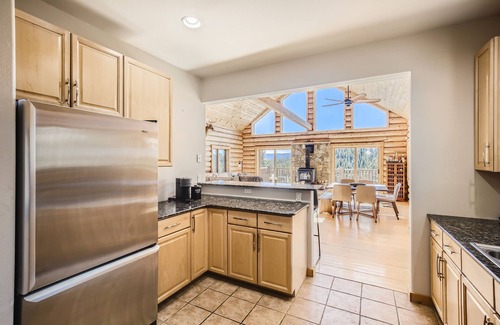 To unwind and relax, cozy up to the wood stove, or take in the breathtaking views and constellations from the oversize deck. Cook up your favorite meals in the full kitchen or outdoor gas grill. If focus time is required, there's a dedicated workspace with fiber internet located in the loft. Please ask us about use of the private office for stays of 30 days or more. Also, the garage is available upon request for stays of 7 days or more.