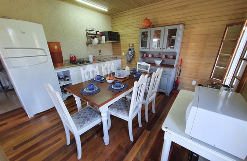 Indoor environment of 80 square meters, barbecue and secure parking. Full kitchen with stove, oven, refrigerator, microwave, toaster, coffee maker and basic kitchen items, all top-notch. In addition, it has a living room and dining room, with an excellent internal fireplace. In addition, we have quality WI-FI internet for Home-Office, 43 '' TV, SKY Cable Channels, bed and bath linen, immense land full of green and a spacious Deck (18m²) with an incredible view to the Morro da Boa Vista, as well as Pôr-do-Sol. All this for the best comfort of our guests, to make them feel at home, in a perfect refuge to rest and discover the best of Serra Catarinense.