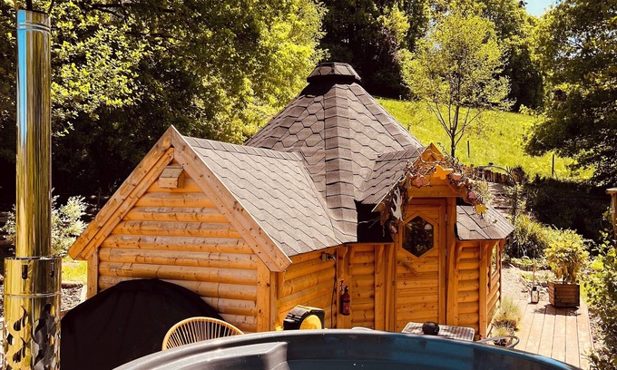 Cabane, Kota "désiré" is located in Saint-Die. Cabane, Kota "désiré" provides accommodation, featuring Kitchen, Designated Smoking Area, Wellness Facilities, among other amenities. This Cottage features Kitchen, Designated Smoking Area, Wellness Facilities, to make your stay a comfortable one.