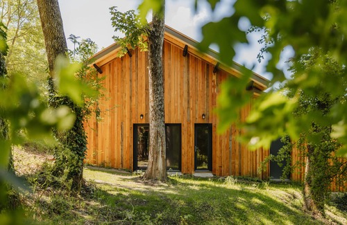 Shed restored into a large cabin located on the edge of the forest. Its particularity lies in its industrial-style wooden layout. Ideal for two families of 4 people, this accommodation is divided into two identical sleeping areas with two bunk beds on the ground floor and a double bed on the mezzanine. Each room has a sink, and a large shared shower connects them. The living room is very bright, with a lounge, a wood stove, a table and a kitchen. The shed will allow you to enjoy the benefits of the Norwegian bath in option.