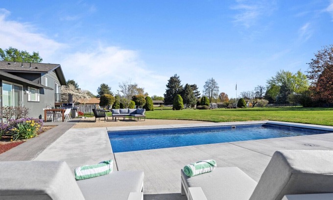 Welcome to Cabernet Compound! Our new 14` x 30` pool and sauna are open for all to enjoy! Prepare to experience a plethora of space for entertainment and activities in the sprawling and sun drenched yard on the Southern Side of Walla Walla Wine Country. You’ll arrive to a manicured yard, brand new swimming pool and sauna. Enter on the main level to the bright spacious living room that is the hub of the home.