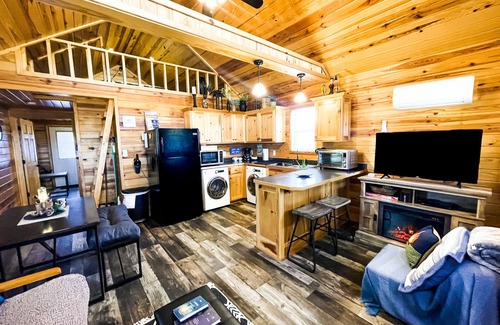Take full advantage of DeGray Lake State Park and all of it’s amenities! We have three cabins available, all located right next to the state park. This listing is for cabin #1 - the first of the smaller cabins. It is a little over 500 sqft with 1 BR/Loft/1BA and open living area and kitchen. The bedroom and loft both have queen beds. There is also a full size futon and single foldout sleeper in the living area. Sleeps up to 6 altogether. Pet friendly!🐾 No pet fee!🐾 Fully fenced in backyard. Outdoor table and chair setup $10 per table. Yard and board game renals $25. Inquire about party setups!