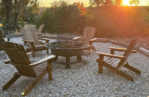 Message me for rates on all four cabins if you have a larger party. We are 2 miles from Dove Ridge winery and wedding venue, and within 30 miles there are over 300 wedding venues we cater to. Just. 25 minutes from downtown Fort Worthbut feeling like your in the middle of the country with Starfield nights and an amazing sunset view. All cabins have access to a large area with two fire pits and eight Adirondack chairs. There’s also a charcoal grill with utensils for your use