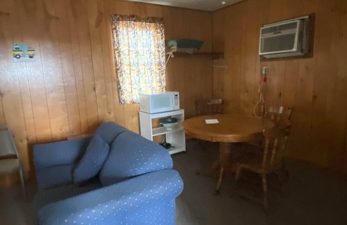 Cabin 1 - single unit with two full-size beds and a hide-a-bed, kitchenette with 4-burner cook top and refrigerator, toaster oven, bath with tub/shower.