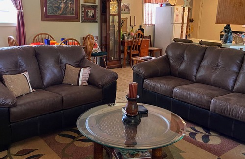 The space will accommodate up to 4 guests. The master bedroom with a queen sized bed and in the guest bedroom, a full size. A blow-up mattress can be found stored in the closet. In our bathroom you will find a blow dryer and little extras if you happen to forget something important. Plenty of fresh clean towels will be close at hand and extra linens are always accessible if you have a need for more. The kitchen provides an excellent space for big or small meals. You will find everything from a nice cooktop to a 1,000 watt microwave. The pots and pans are provided and the drawers and cabinets are full of useful kitchen gadgets and utensils.