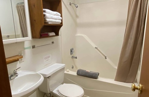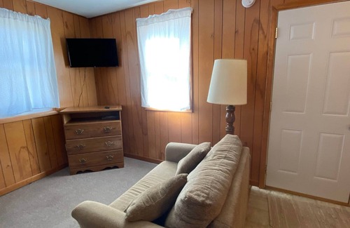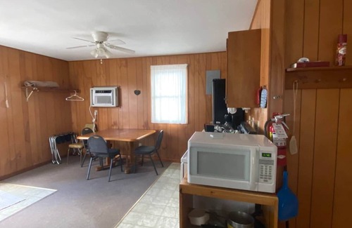 Cabin 10 - single room unit, two full-size beds and hide-a-bed, full kitchen, range with oven, refrigerator, bath with tub/shower.