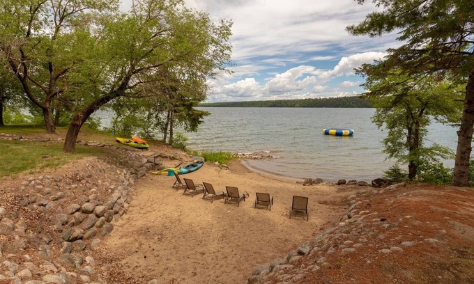 - Lakefront retreat on Island Lake. Two cabins, 7 bedrooms, sand beach, privacy+