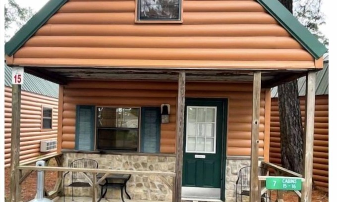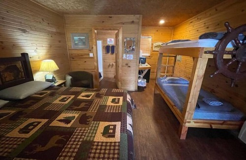 Cabin 15 at Tranquility Bay Resort includes: 1 Queen bed, set of bunk beds, small refrigerator, microwave and coffee pot. Twin bed in loft. Sleeps 5.