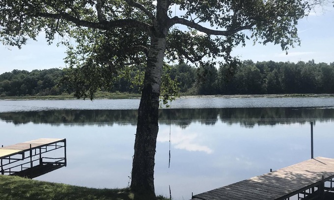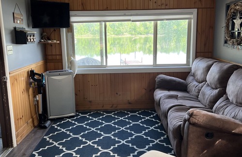 Renovated bathroom and new flooring throughout for SPRING 2022.......This cabin has plenty of room for a family. Two bedrooms and one bathroom. One bedroom has a queen and a twin. The other bedroom has a full and a twin with a trundle. There is a large living/dining and kitchen area. You will have your own dock and firepit. The water is right out the front door. We also offer kayak rental at the property. Our place is quiet and relaxing. Each cabin has a screened-in porch with a table and chairs. We also have wifi for the rainy days! If interested in renting both cabins, the property ID for the adjacent cabin is 1609742.