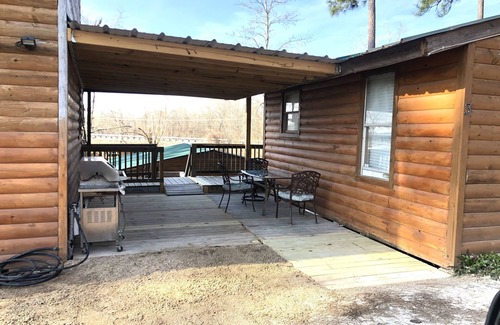 Nice cabin porch lake views. Beautiful knotty pine interior, log siding exterior cabin with wonderful comforts, Hickory kitchen cabinets, granite countertops, sunsets over the water, nature watching, boat launch, boat slips, boating, swimming, fishing, canoe, kayacks, wild life, and charming towns close by, piers, cable TV, WiFi.