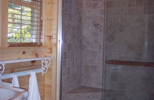 You’ll love the cozy feel of this cabin. “Three’s A Crowd” is perfect just for two. With the nice fireplace, soft music, a nice glass of wine, and the hot jacuzzi tub, you’re set for the perfect evening together. You’ll find it to be just what you were looking for, a quite atmosphere to rest and enjoy time together without the interruption of the outside world. Whether you're here for a honeymoon, anniversary, a romantic evening, or just to be pampered with relaxation you will find this is the perfect place for you.